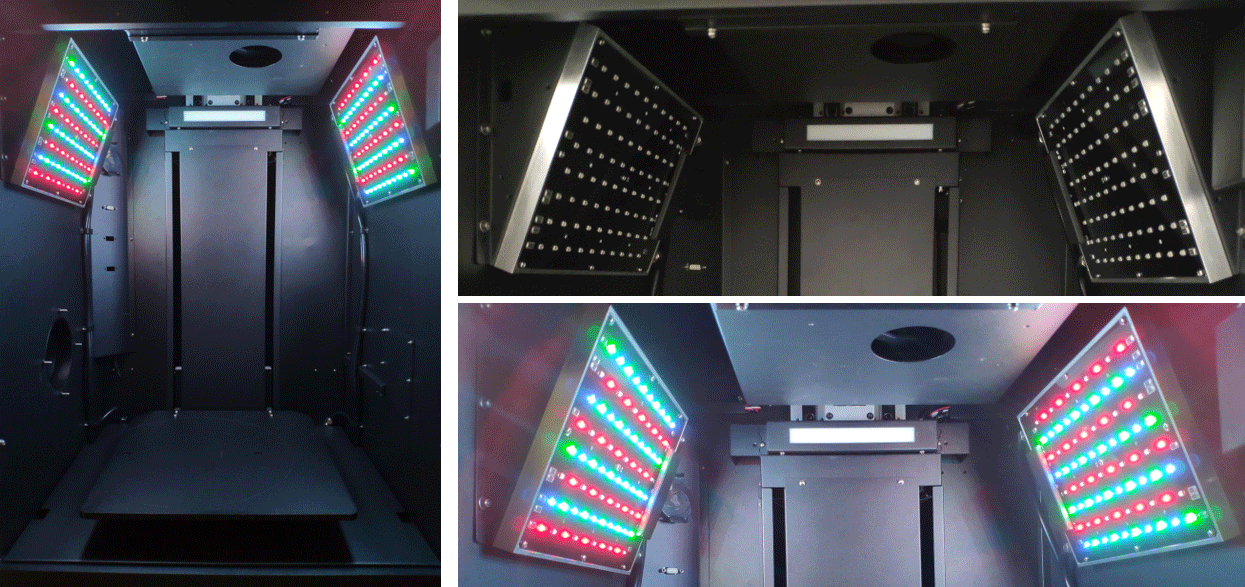 PlantView100配備(bèi)植物光照模拟模塊,其含有兩塊LED照射闆及冷水循環系統,可通過軟件編輯每一種波譜的LED燈的光強和時間,模拟真實日光的光譜和強度,可用於(yú)植物生長節律及光周期實驗檢測。同時儀器内部還預留有電源插口及法蘭接口,可以快速引入各種實驗條件和實驗設備(bèi),如溫度、濕度、光照和顯微鏡等,實驗方法更加多樣,功能更加強大。