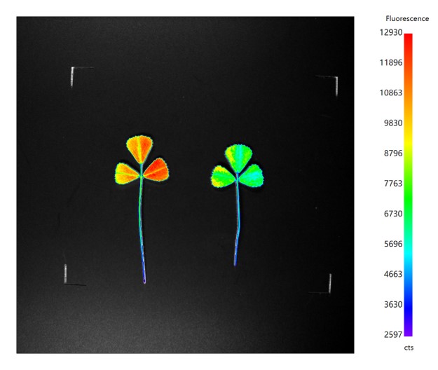 對植物體中葉綠素進行定性和定量測(cè)定來估算植物的生長狀況及分布,可作爲植物和環境質量評估的指标。PlantView100配備(bèi)優異的熒光成像模塊,通過對植物葉片葉綠素的監測(cè)可實現對農作物病害的早期無損檢測(cè)以及重金屬污染等對農作物的傷害和環境的影響等應用。